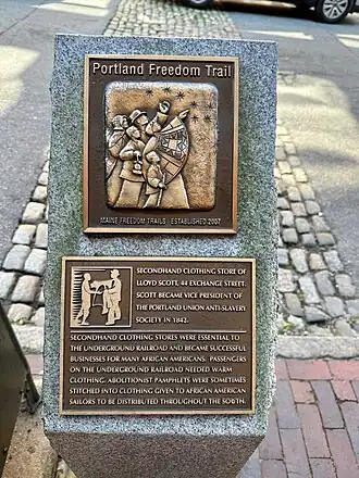 ![]() A marker of the Portland Freedom Trail on Exchange Street | |