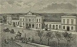 The first plan for a station was presented in 1860, to be built in Esteiro de Campanhã and that connected the Douro line to Minho, through an extension that follows the Campanhã valley to the branches along the Rio Tinto.[2] Initially designated, the Estação de caminho de ferro do Pinheiro (Pinheiro Railway Station), the station at Campanhã was designated for lands occupied by the estates of Quinta do Pinheiro and Quintas do Valado.[2]