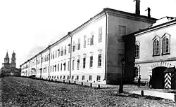 Varvara Vladimirovna Adoratskaya was born in Kazan in 1904. A year later, her father was arrested for revolutionary activities and was first imprisoned, then exiled from the Russian Empire (though the Adoratsky family returned to their homeland briefly in 1907, when a family photo was taken in S. Felzer's studio in Kazan).[13] Varvara and her mother followed her father into exile. The family lived in Switzerland and later in Germany. After the outbreak of World War I in 1914, Varvara and her parents were interned.[14] In 1918, following an exchange proposed by Lenin, the Adoratskys returned to Russia. The family settled in Moscow, where Vladimir Adoratsky began working in the Central State Archive,[13] and Varvara studied at Vkhutemas from 1923 to 1925.[15] The Adoratsky family lived in an apartment in the Government House (also known as the "House on the Embankment"). Varvara's mother was disabled from a young age, having lost her hearing and eyesight, and was barely able to move, so her daughter had to devote herself to caring for her. In her youth, Varvara herself suffered from tuberculosis and Graves' disease, which is presumably what prevented her from completing her university studies.[14]