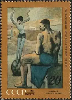 Art critic and poet Larisa Davtyan wrote that she initially perceived the heroine of the painting as “a huge doll with a very human face,” since the girl sits in full height on the table. In her opinion, this is not just bad taste, but a dangerous challenge to the sacred representation of “the table as God's throne.” She later realized that this is not a performance of a doll (like Suok from Yury Olesha's The Three Fat Men), because the girl's expression is serious, and she looks uncomfortable on such a podium. In Varya Adoratskaya's gaze, Davtyan read the child's perplexed question to the strange adults: “Why did you put me here?” The girl sitting on the table lacks, in the critic's opinion, the inner balance that is present in the girl balancing on the ball in Pablo Picasso's Girl on a Ball.[41]