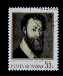 In 1971, The State Post of Romania issued a stamp in occasion of the 400th anniversary since Cellini's death. The "porphyry portrait" was chosen as the basis for the stamp. Although in 2007, the Parisian auction house "Drouot" sold a picture attributed as "Portrait of Monsieur Strozzi" by an unknown follower of Cornelius de Lion. This picture is signed.