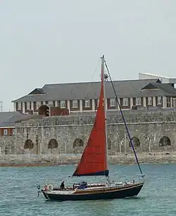 Camber Dock is the oldest developed part of the Portsmouth Harbour complex.[9] Lying within the historic area of Old Portsmouth, it is part of Portsmouth Point that lies outside the original fortified boundaries of Portsmouth. After improvements in the King James's and Landport Gates and the areas military defences,[10] civilian building of dockside storage and ancillary servicing facilities began from 1590.[11] With major ships anchored at Spithead, from the 18th century the surrounding area became noted as a popular but lewd area for visiting sailors.[11]