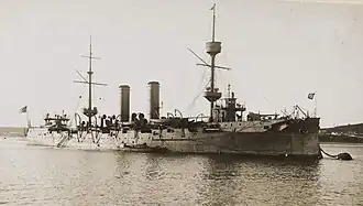 1. ^ Displacement of 4,186 t is given in most sources, without further specification.(Jane’s (1990, p. 288)Gardiner, Chesneau & Kolesnik (1979, p. 378)) The period source also states 4,250 t(Notes on Naval Progress (1899, p. 108)