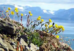Potentilla chamissonis, the bluff cinquefoil, is distributed across Svalbard, northern Norway, Greenland and the eastern Arctic of Canada.[1] It grows on ledges on steep slopes, and in crevices.[2]