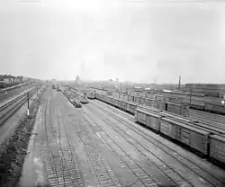 Potomac Yard in its heyday was one of the busiest railyards in the Eastern United States, processing thousands of cars daily. The PRR extended its railway electrification program to Potomac Yard in 1935, marking its southernmost point.[7] The Penn Central segment of the famous Tropicana Juice Train operated from here. The site reached capacity in 1937.
