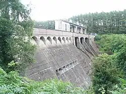 53°07′01″N 6°35′14″W / 53.11694°N 6.58722°W / 53.11694; -6.58722 Poulaphouca, officially Pollaphuca (Irish: Poll an Phúca, meaning 'the Púca's hole'),[1][2] is the name of a waterfall and bridge on the River Liffey between County Wicklow and County Kildare. It is primarily known for its hydroelectric generating station and the associated artificial lake, known as Poulaphouca Reservoir, Poulaphouca Lake, or Blessington Lakes. The once-famous Poulaphouca Waterfall has little water running over it any longer because of the hydroelectric project.