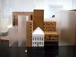 Designed by architects Marcos Cartum, Marcelo Ferraz and Francisco Fanucci, the cultural complex established itself as an urban redevelopment intervention in the central area of São Paulo. Several damaged buildings were expropriated for its construction, including the conservatory, which was restored and incorporated into the complex's design. The Cairo and Saci cinemas were also expropriated, but the first had its facade preserved.[4][5][2]