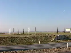 To the southeast of the fortress, a large civil settlement (vicus) developed, stretching for approx. 1 km along the via militaris. It was inhabited between approx. 70 and 240 AD.[4] Archaeological investigations have uncovered living quarters, storehouses and granaries, and possibly a bath house. A large cemetery containing over 700 graves was found as well. Between 70 and 110 AD, a small military encampment ("mini-castellum") was located here as well.[5]