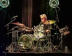 ![]() Prairie Prince drumming during Todd Rundgren's "A Wizard, a True Star Tour" in San Francisco, 2009 | |