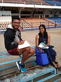 Aiyappa with her husband Sri Aiyappa at the Kanteerava Indoor Stadium, 9 July 2019