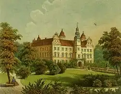 The family seat was in the town of Niemodlin (then known as Falkenberg) until the end of World War II, when the town became part of the nascent Eastern Bloc.[6]
