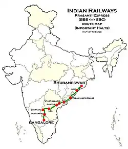 - ^ "18463/Prasanti Express (PT) - Bhubaneswar to Bangalore ECoR/East Coast Zone - Railway Enquiry".