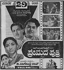 Premada Putri (ⓘ) is a 1957 Indian Kannada-language film, directed, produced and starring R. Nagendra Rao.[1] In addition to Nagendra Rao, the film features Udayakumar, Sandhya and Gummadi. R. N. K. Prasad made his debut in this film. Premada Putri won the National Film Award for Best Feature Film in Kannada at the 5th National Film Awards.[2] The film's musical score and soundtrack were composed by H. R. Padmanabha Shastry and T. G. Lingappa, with lyrics written by R. N. Jayagopal and Prabhakar Shastry. The film was simultaneously shot in Tamil as Anbe Deivam with a slightly different cast.