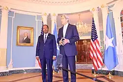 On 17 December 2014, President Mohamud appointed former Premier Omar Abdirashid Ali Shermarke as the new Prime Minister.[20] On 24 December, the national legislature approved the nomination. Of the 224 MPs present at the parliamentary session, 218 voted in favor of the appointment, none rejected it or abstained, and six left the hall.[21] On 12 January 2015, Sharmarke announced his new Cabinet, consisting of 26 ministers, 25 deputy ministers, and 8 state ministers. Many ministers were retained from the previous Ahmed administration.[22] Sharmarke indicated that he selected the new Council of Ministers after intensive consultations with local stakeholders, with the aim of balancing the public interest with governmental continuation and administrative priorities.[23] On 17 January 2015, Prime Minister Sharmarke dissolved his newly nominated cabinet due to vehement opposition by legislators, who rejected the reappointment of certain former ministers.[24] At Sharmarke's behest, the Federal Parliament concurrently granted him a time extension to engage in further consultations before was to select a new Council of Ministers.[25] On 27 January 2015, Sharmarke appointed a new, smaller 20 minister Cabinet.[26] On 6 February, Sharmarke finalized his cabinet, consisting of 26 ministers, 14 state ministers, and 26 deputy ministers.[27] Federal legislators later approved the new Council of Ministers on 9 February, with 191 voting in favor it, 22 against it, and none abstaining.[28]