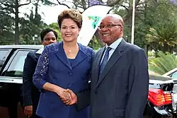 Shortly before his inauguration, Zuma told the media that there would be "continuity" and the government's foreign policy would not change.[3] However, there is debate about the extent to which Zuma's foreign policy marked a breach from his predecessor Mbeki's. In August 2009, the new government's strategic framework was published, setting out the broad theme of "Pursuing African Advancement and Enhanced Co-operation" for its foreign policy approach. The phrase "African advancement," like Mbeki's "African agenda," refers primarily to the prioritisation of the objectives, especially the developmental objectives, of African and Global South countries; strategic engagements with the countries and international bodies of the North were primarily conceived of as a mode of promoting such objectives.[3] Similarly, a 2011 White Paper on Foreign Relations, titled Building a Better World: The Diplomacy of Ubuntu, stressed Pan-Africanism and South-South solidarity as the central principles of South Africa's foreign policy.[78] These principles had also been advocated by Mbeki's government.[3]