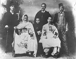 Habib Bourguiba grew up among women, as his brother was in Tunis and his father was elderly. He spent his days with his mother, grandmother and sister, Aïcha and Nejia, which permitted him to notice the casual household chores of women and their inequality with men.[2] After starting his elementary education in Monastir, his father sent him to Tunis in September 1907, when he was 5, to pursue his studies at the Sadiki primary school. The young boy was profoundly affected by the separation from his mother at that early age.[3] At the time of his arrival, the city was struggling against the protectorate, an early phase of the Tunisian national movement led by Ali Bach Hamba. Meanwhile, Habib settled in the wealthy neighbourhood of Tourbet el Bey in the medina of Tunis, where his brother, M'hamed, rented a lodging on Korchani Street. As the school year began, his brother enrolled him in Sadiki College where the superintendent described him as "turbulent but studious".[4]