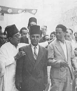 Despite the split-up, the two Bourguibas, El Materi, Guiga and Bahri kept in touch and decided to found their own paper thanks to the aid of pharmacist Ali Bouhajeb.[35] Therefore, on 1 November 1932, was published the first edition of L'Action Tunisienne which had as redactional committee the young team joined by Bouhageb and Béchir M'hedhbi. Thus, Bourguiba devoted his first article to budget.[36] Soon disappointed by the resigned moderation of their elders, the young nationalists unleashed and took the defence of the lower classes. Bourguiba, who saw his popularity increase thanks to his writings, frequented often intellectual circles whom he had just met.[37] He showed both clarity and accuracy in his writings, which revealed a talented polemicist, thanks to his strong legal expertise. Furthermore, he had worked on demonstrating the colonial exploitation mechanism by ascending from effects to causes, while showing a great interest in social phenomenons, inviting the workers and students to organize and thus, defend themselves better against exploitation. In addition, he encouraged the defense and safeguard of the Tunisian personality.[38]
