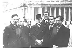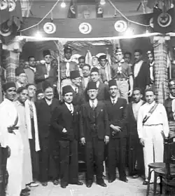 In the beginning of the 1930s, Habib Bourguiba, feeling the effects of colonial inequalities, decided to join the main political party of the Tunisian national movement, the Destour, alongside his brother M'hamed and his mates Bahri Guiga, Tahar Sfar and Mahmoud El Materi.[29] Revolted by the festivities of the 30th eucharistic congress, held from 7 to 11 May 1930 in Carthage, and which he considered as a "violation of islamic lands", the young nationalists found it necessary to get involved. With the upcoming preparations for the 50th anniversary celebration of the protectorate and the scheduled visit of French president Paul Doumer, the young nationalists decided to act. Bourguiba denounced the rejoicing, in the newspaper Le Croissant, ran by his cousin Abdelaziz El Aroui, as a "humiliating affront to the dignity of the Tunisian people to whom he recalls the loss of freedom and independence". Therefore, the leaders of the Destour party gathered in emergency at Orient Hotel, in February 1931, where it was decided to found an endorsing committee to the newspaper of Chedly Khairallah, La Voix du Tunisien, which switched from weekly to daily and had among its editors the young nationalist team.[30]