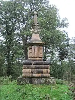 The grade I listed pyramid is built of limestone, about 8 metres (26 ft) high, and has a square plinth with a rusticated base and a moulded frieze. The rusticated pyramid stands on the base.[4][5] It was restored in 2000.[6] From it, The Pyramid, a slightly later work, is visible.[1]