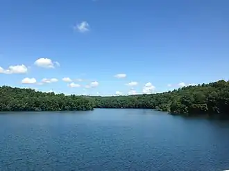 Prettyboy Reservoir is a 1,500-acre (610 ha) reservoir in the Hereford Zone of northern Baltimore County, Maryland. While the reservoir is in Baltimore County, the independent city of Baltimore owns the reservoir and the surrounding land. The reservoir is one of three reservoirs created to supply the municipal water system for Baltimore City, Baltimore County, and northern Anne Arundel County constructed by the Baltimore City Department of Public Works. Prettyboy Reservoir, along with Loch Raven Reservoir further down the Big Gunpowder Falls, provide about 61% of the drinking water for the Baltimore metropolitan area system; for this reason, the Prettyboy is considered a "source water" or drinking water watershed. The reservoir contains about 19 billion US gallons (72,000,000 m3) of water on average.[4]