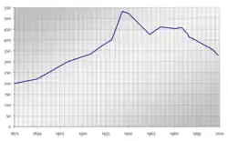 In 1835 the village had 33 houses with 177 inhabitants. There were 31 horses, 238 cattle, 8 goats, and 65 pigs.[29] After the Second World War, due to the influx of displaced persons, the population of Prieschka increased to 533 in 1946 and reached its peak. In 2016 the number of inhabitants decreased to 286.[30]