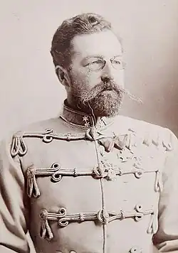 In 1870, he became a Major in the Hungarian army. He was a close confidant to his brother-in-law, Crown Prince Rudolf.[1] On the morning of 30 January 1889, he and Count Josef Hoyos-Sprinzenstein and valet Johann Loschek discovered the bodies of Rudolf and his teenage mistress Baroness Mary Vetsera, who had also been shot dead.[2]