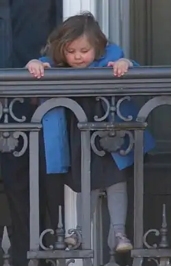Princess Isabella was born on 21 April 2007 at 4:02 pm CET at Rigshospitalet, the Copenhagen University Hospital, in Copenhagen, to then Crown Prince Frederik and Crown Princess Mary.[1] The following day, public buses and official buildings flew the Danish flag, the Dannebrog, and at noon a 21-gun salute was fired from the Sixtus Battery at Holmen Naval Base in the Port of Copenhagen and from Kronborg Castle in North Zealand to mark her birth.[2] Incidentally, Isabella was the first princess whose birth was marked with 21 shots, as the number of shots in the cannon salute had previously been different depending on the sex of the newborn, as 21 shots were fired for a boy and 17 shots for a girl.[2] But before Prince Christian was born in October 2005, the palace decided that 21 shots should be fired, regardless of the child's sex.[3]