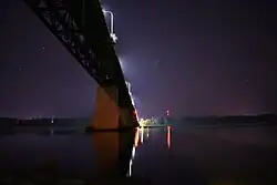 Constructed as a steel truss structure, the bridge measures 1,097 m (3,599 ft) in length and has a navigation clearance of 25 m (82 ft) in the centre. It opened in 1959 as part of the Route 2 Trans-Canada Highway bypass project around Fredericton. Following a realignment of Route 2 in 2001, the bridge now carries Route 8, the primary Fredericton-Miramichi highway.