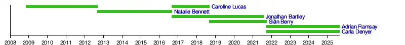 - ^ BBC News (31 May 2018). "Green leaders: who came before Caroline Lucas?". Retrieved 30 July 2018.