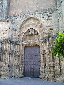 The church has doorways from different periods. One of the entrances, known as the "Door of Forgiveness", is constructed in the Gothic style and dates from the original construction. The doorway currently used as the main entrance is the "Sun Portal" (Puerto del Sol), which gives access from the Plaza España to the nave of the Epistle.[4]