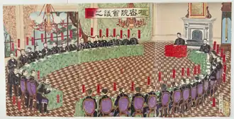 The Privy Council of Japan (枢密院, Sūmitsu-in) was an advisory council to the Emperor of Japan that operated from 1888 to 1947. It was largely used to limit the power of the Imperial Diet.[1][2]