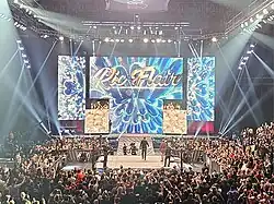 In subsequent years, WWE insisted that its talent use "sports entertainment" rather than "pro wrestling" to describe its business, to the point that the term was sometimes used in other promotions to generate "heat" (fan reaction and engagement).[74][75] The line between sports entertainment and competitive sports was further blurred in 2023, when WWE merged with the parent company of Ultimate Fighting Championship (UFC), a genuinely competitive mixed martial arts promotion, in what was officially announced as an effort to "bring together two leading pureplay sports and entertainment companies" and provide "significant operating synergies" between them.[76] The following year, WWE moved away from its insistence on being a sports entertainment company after Vince McMahon's departure from the company,[77] but still uses "sports entertainment" in some contexts.[74][78]