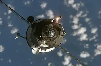 The spacecraft docked with the Pirs module at 01:59 UTC on 20 January 2007.[2] It remained docked for 193 days before undocking at 14:07 UTC on 1 August 2007.[3] It was deorbited at 18:42 UTC the same day.[3] The spacecraft burned up in the atmosphere over the Pacific Ocean, with any remaining debris landing in the ocean at around 19:26 UTC.[4][5]