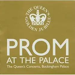 The Prom at the Palace was a classical music concert held in London in 2002, in commemoration of the Golden Jubilee of Elizabeth II.[1][2] It was held at Buckingham Palace Garden on 1 June 2002 and formed part of the Golden Jubilee Weekend.[1] It was the classical equivalent of the Party at the Palace, a pop/rock music event.[1] Its name reflects the popular season of classical concerts held at the Royal Albert Hall, The Proms. The event was broadcast by the BBC and shown in more than 40 countries.[2] It was directed by Nicholas Kenyon.[3]