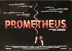 Prometheus is a 1998 film-poem created by English poet and playwright Tony Harrison, starring Micheal Feast in the role of Hermes. The film-poem examines the political and social issues connected to the fall of the working class in England, amidst the more general phenomenon of the collapse of socialism in Eastern Europe, using the myth of Prometheus as a metaphor for the struggles of the working class and the devastation brought on by political conflict and unfettered industrialisation. It was broadcast on Channel 4 and was also shown at the Locarno Film Festival. It was used by Harrison to highlight the plight of the workers both in Europe and in Britain. His film-poem begins at a post-industrialist wasteland in Yorkshire brought upon by the politics of confrontation between the miners and the government of Margaret Thatcher.[1][2][3][4][5][6] It has been described as "the most important artistic reaction to the fall of the British working class" at the end of the twentieth century.