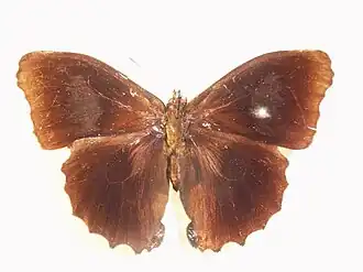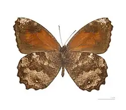 - ^ a b Peña, C.; Wahlberg, N.; Weingartner, E.; Kodandaramaiah, U.; Nylin, S.; Freitas, A. V. L.; Brower, A. V. Z. (2006). "Higher level phylogeny of Satyrinae butterflies (Lepidoptera: Nymphalidae) based on DNA sequence data". Molecular Phylogenetics and Evolution. 40 (1): 29–49. Bibcode:2006MolPE..40...29P. doi:10.1016/j.ympev.2006.02.007. PMID 16563805.