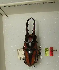 Prosopocoilus savagei is a beetle of the Family Lucanidae. It is found in Central and East Africa. It measures about 24–65 mm in males and 21–31 mm in females.[1]