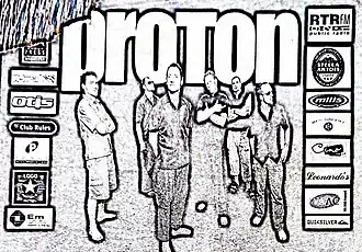 Proton is a "funk-disco-rock-hop" band from Perth.[1] Members included Peter 'Buzzy' Miller, Tomas Shore, Jason McGann (John Butler Trio), Joe Scholz, Paul Malone, Wayne 'Ozzie' Rea aka MCO (ex Vitamin with John Butler), Chris Horan, Toby Gosfield, (son of Rueben "Lucky Oceans" Gosfield, Asleep at the Wheel), Jo 19, Duane Davidson, and DJ KL. Their single "The Wrong Beat"/"Throw Down" reached number 82 on the ARIA singles chart.[2] Proton played the Big Day Out Festival in 2000.