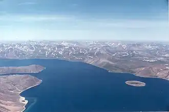 The district lies in a mountainous region, with most of its inhabited localities found on the coast. Wetlands occupy the territory between mountain ranges and close to the shore near inlets and brackish lagoons.[13] The southern section of the coastline is approximately 850 kilometers (530 mi).[13] About a quarter of this consists of beaches and gravel spits with the remainder consisting of rugged, rocky coastline containing numerous fjords.[13] Lakes Pychgynmygytgyn, Achchyon and Medvezhye are located in the district.[14]