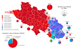 In the Prussian census of 1890, the province of Silesia had a population of 4,224,458, of which 3,105,843 (73.52%) spoke German, 973,596 (23.05%) spoke Polish, 68,781 (1.63%) spoke Czech, 26,257 (0.62%) spoke Sorbian and 48,045 (1.14%) identified as bilingual.[14]