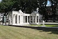 Lieutenant Pruett Mullens Dennett was killed in action on 2 June 1918 near Estaires, Nord, France.[10][11] His Sopwith Camel was shot down by Kurt Schönfelder, flying ace of Jasta 7 and credited with 13 aerial victories. (The German pilot was shot down weeks later, on 26 June 1918, when his Fokker D.VII was defeated by Sopwith Camels flown by 210 Squadron.)[12][13] Dennett is commemorated on the Arras Flying Services Memorial at the Faubourg d'Amiens Cemetery on the Boulevard du General de Gaulle in Arras, Pas-de-Calais, France. In addition, Dennett is represented on the Brighton War Memorial at the Old Steine Gardens in Brighton, East Sussex, England.[14]
