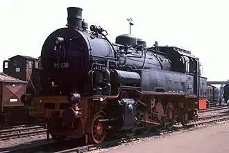 The Deutsche Reichsbahn took over 400 T 14s from Prussia and six from the Imperial Railways in Alsace-Lorraine as 93 001 to 93 406. The T 14s from Alsace-Lorraine were given numbers 93 094, 188–191 and 237. In 1927 two more T 14s were acquired from the Farge-Vegesack Railway and numbered as 93 407 and 408; and in 1935 locomotives 93 409 to 93 417 from the Saar Railway were added.[1] In World War II several T 14s came from Poland and Belgium into the DRB fleet as 93 418 to 93 450. After the Second World War the Deutsche Reichsbahn (GDR) incorporated further T 14s, which came from France and Belgium, as 93 451 to 93 459.