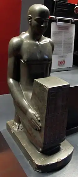 Psamtikseneb was a chief physician and chief dentist (wr ἰbḥ) and also an admiral (ḫrp qqwt - leader of the transport/war-ships).[5][6] Especially on a statue now in the Musei Vaticani, Psamtikseneb bears a number of important titles, such as sole friend, leader of the foremost thrones, chief dentist of the pharaoh, scorpion charmer and son of Selket, the latter being the name of the ancient Egyptian scorpion goddess. On his sarcophagus were only inscribed the titles scorpion charmer and son of Selket.[4]