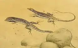 - Pseuderemias striatus (W. Peters, 1874) – Peters's sand lizard, Peters's sand racer