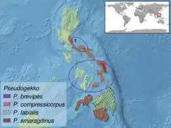 Pseudogekko is a genus of rare gecko species, commonly known as false geckos. All 10 known species are found in the Philippines.[1][2][3]