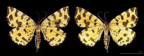 2. ^ Kimber, Ian. "Speckled Yellow Pseudopanthera macularia (Linnaeus, 1758)". UKmoths. Retrieved 20 June 2021.