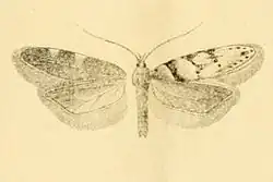 The wingspan is about 12.5 mm.[3] The forewings are white, divided in four fields by three brown bands. The hindwings are whitish-grey.[4]