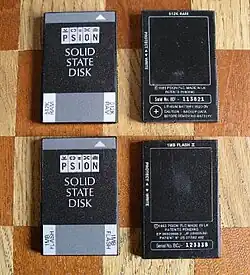 Psion Series 3s have room for two flash-memory cards, which enabled backup of data. Psion, Acorn and third party software was available loaded onto such memory cards which were available as separate packs.