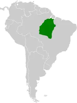 The olive-winged trumpeter (Psophia dextralis) is a species[2] of bird in the family Psophiidae. It is found in the Amazon rainforest of Brazil, but only east of the Tapajós River and west of the Araguaia River. This species was split from Psophia viridis (dark-winged trumpeter) in 2014. As of 2016, this species is listed as an endangered species.[3]