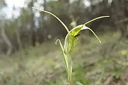 The antelope greenhood grows among grasses on slopes in forest in north-eastern Victoria and in eastern New South Wales as far north as the Northern Tablelands.[3][4][5]